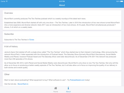 MunchTech currently produces The Two Techies podcast which is a weekly roundup of the latest tech news.