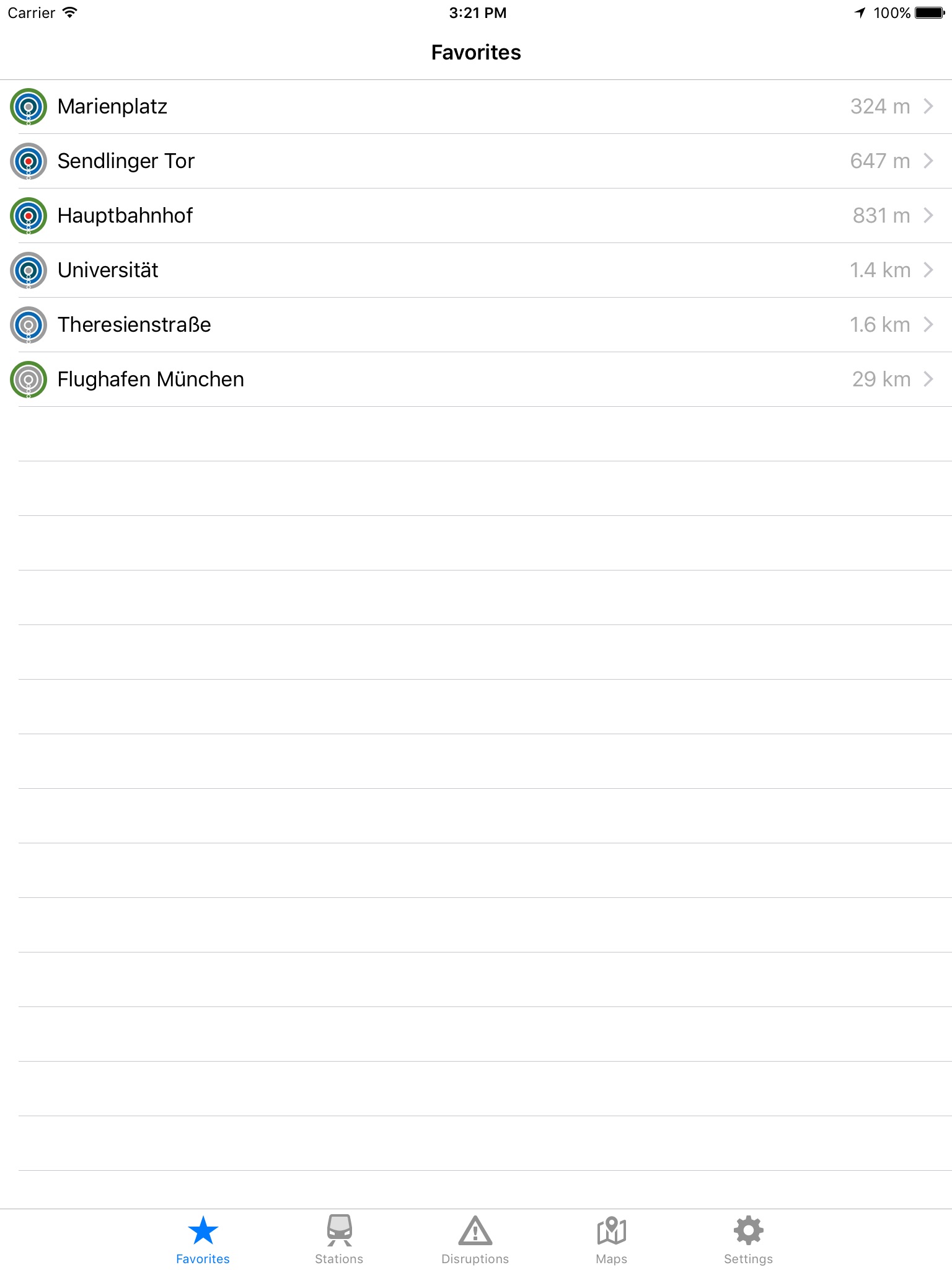 Fast display of live departures in Munich for S-Bahn, U-Bahn, Tram and bus, including delays. As App, Notification Center Widget, Apple Watch App and Glance. Simply add stations to your favorites and never miss a departure again!