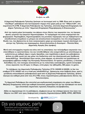 The Municipal Radio of Tripolis 91,5 fm (MRT) is one of the 1st “free” radio stations that emitted legally in Greece.
