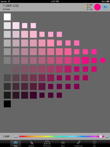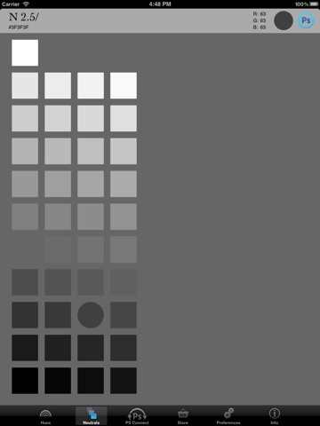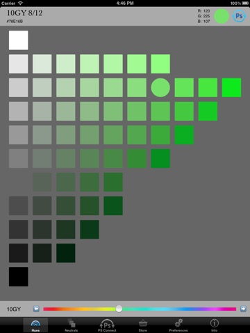 Munsell DG allows you to browse the Munsell color space on your iPad, iPhone or iPod Touch. Touch Munsell colors to see their RGB values. Via an in-app purchase, connect Munsell DG to your computer running Photoshop CS5 or later (or Photoshop Elements version 10 or later) and use your device as a Munsell color picker for Photoshop! An essential tool for digital artists, and traditional artists who want to use Munsell in the digital realm.