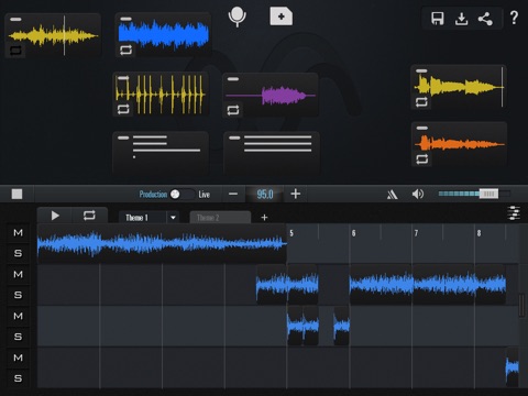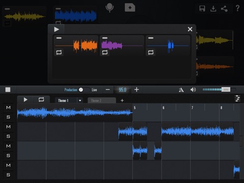 - Multiple timeline arrangement views with mute and solo, track volume, and metronome controls (iPad only)