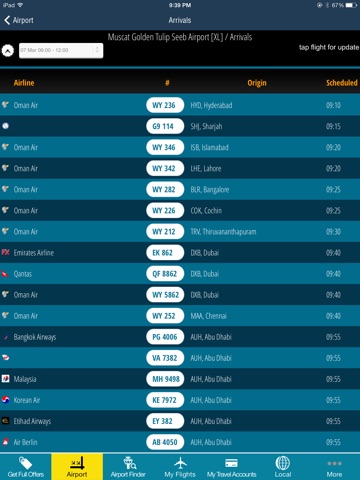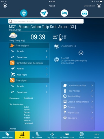 Muscat Goldin Tulip Seeb Airport (MCT) is the largest airport in Oman. Muscat Airport is the main hub for Oman Air and has one terminal. in 2014 a second terminal is expected to open to handle the growth of passenger traffic. This app provides complete information for Muscat Airport including parking, food and restaurants, terminal maps, directions and more.