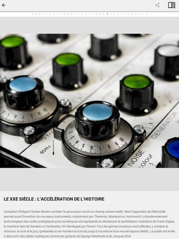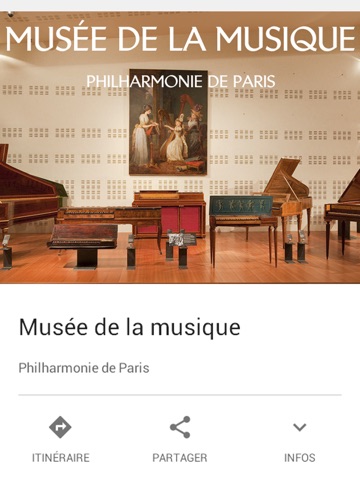 Within the Philharmonie de Paris, the Museum of Music represents a collection of more than 7000 instruments and art objects, with almost 1000 on exhibit in the permanent exhibition space, including national treasures and legendary instruments such as a piano belonging to Chopin and a guitar belonging to Brassens. The museum presents a history of Western music from the 17th century to today and an overview of the main musical cultures of the world.