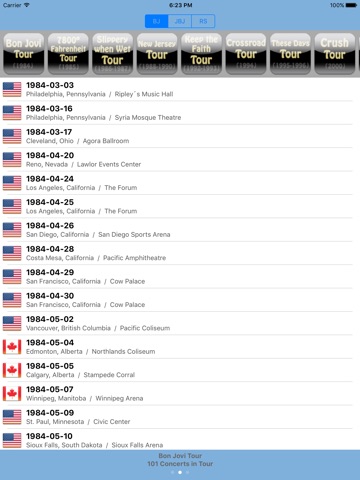 2- TOURS (More than 1500). Here are all the tours available, from 1983 to the most current, interesting as data (date, place, city, country, setlist).