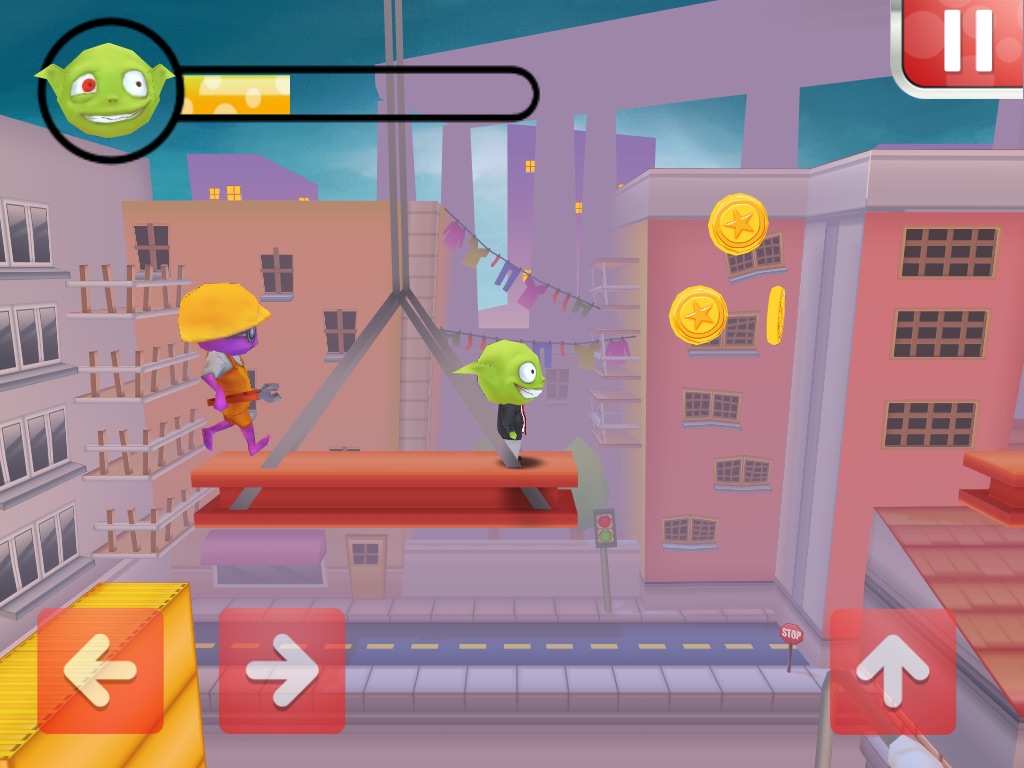 Survive the city, collect coins, make him happy and enter his bonus world.
