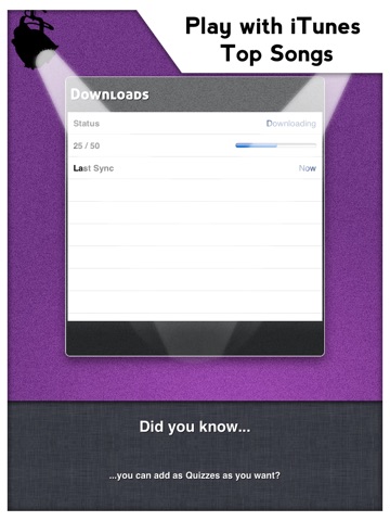 Play with your friends with the local multiplayer mode, up to 4 players sharing the same device, or if you prefer, challenge other players from all over the globe through Game Center. Or just enjoy a quiz designed for you with your favorite songs.
