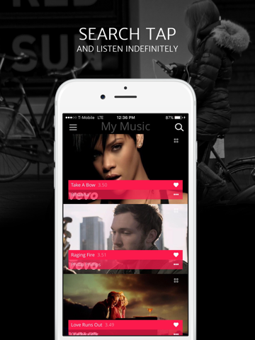 * Tap any song, any where and listen to the entire catalog of music without having to go back to the app
