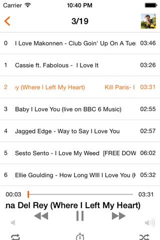 • 3 kinds of play mode:normal, loop one song, loop playlist.