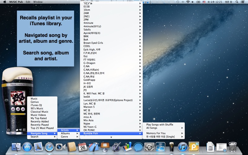 Even though its small Music Pub that provides comfortable interface with various function. Dont need a big iTunes window.