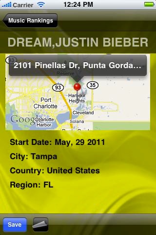 Never miss a show from your favorite band. find nearby music events in your area. Buy tickets direct from your iPhone or iPod touch.
