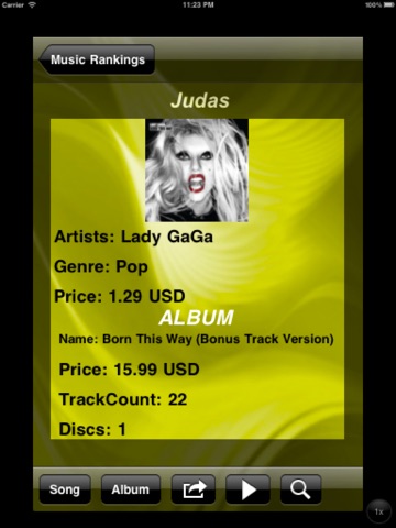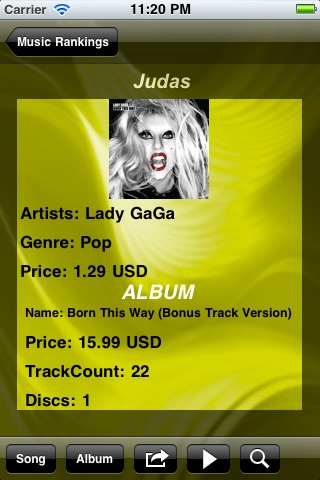 This simple and really to use application helps you to find bestsellings music hits arround the world on the go in your apple mobile device Iphone/Ipod/Ipad.