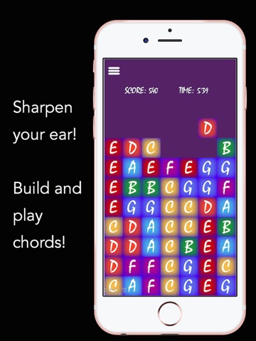 Music Theory-SoundSquares is a "mobile ear training gaming environment" designed for the beginner to intermediate musician. Using a stacking strategy similar to Tetris, interactive note-blocks fall from the top of the screen and move toward the bottom. The player assembles these block to create 3-note chords--both vertically and horizontally. The notes and chords are integrated into a constantly shifting backing track. This track allows the user to develop chord construction, and chord identification skills in a real life context, but also to experiment with improvisation and musical timing.