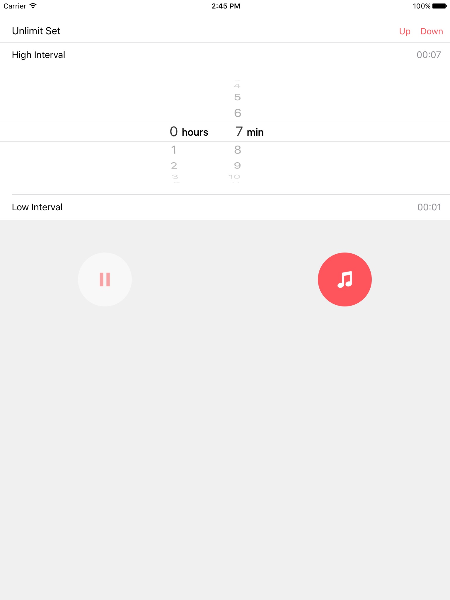 (Note: Select what you want to play on your phones native music app first and then press pause. Then open Music TicToc to set the interval times.)