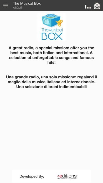 Una grande radio, una sola missione: regalarvi il meglio della musica italiana ed internazionale. Una selezione di brani indimenticabili!
