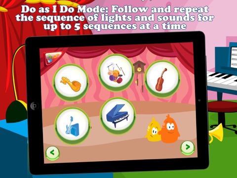 Do As I Do Mode: Follow and repeat the sequence of lights and sounds for up to 5 sequences at a time.