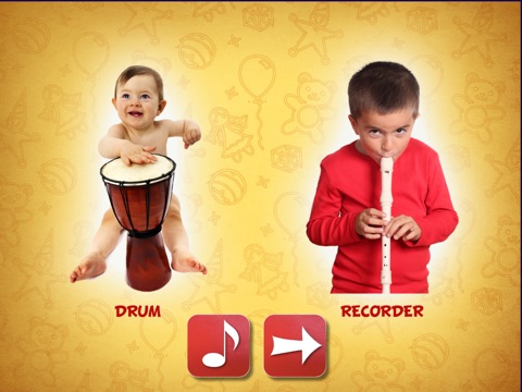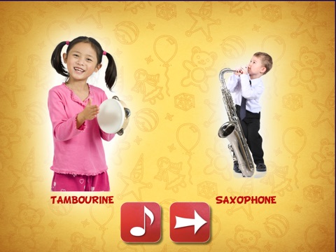 Musical quiz for toddlers and preschool kids that teaches how the particular instrument looks and sounds like.