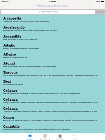 This dictionary contains rich selection of thousands of musical terms, abbreviations and definitions, which are all concisely written for quick and easy review. It also goes beyond the in-depth text definition and provides all in one illustration by images and video, also by Wiki in all respects for your comprehensive understanding. To make the learning more fun and easier, this software has included everyday vocabulary quiz with flashcard to test how much you have remembered.