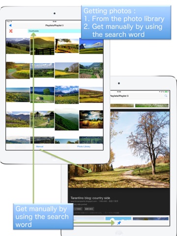 Can be selected manually (still image) photo from the Internet using a search word.