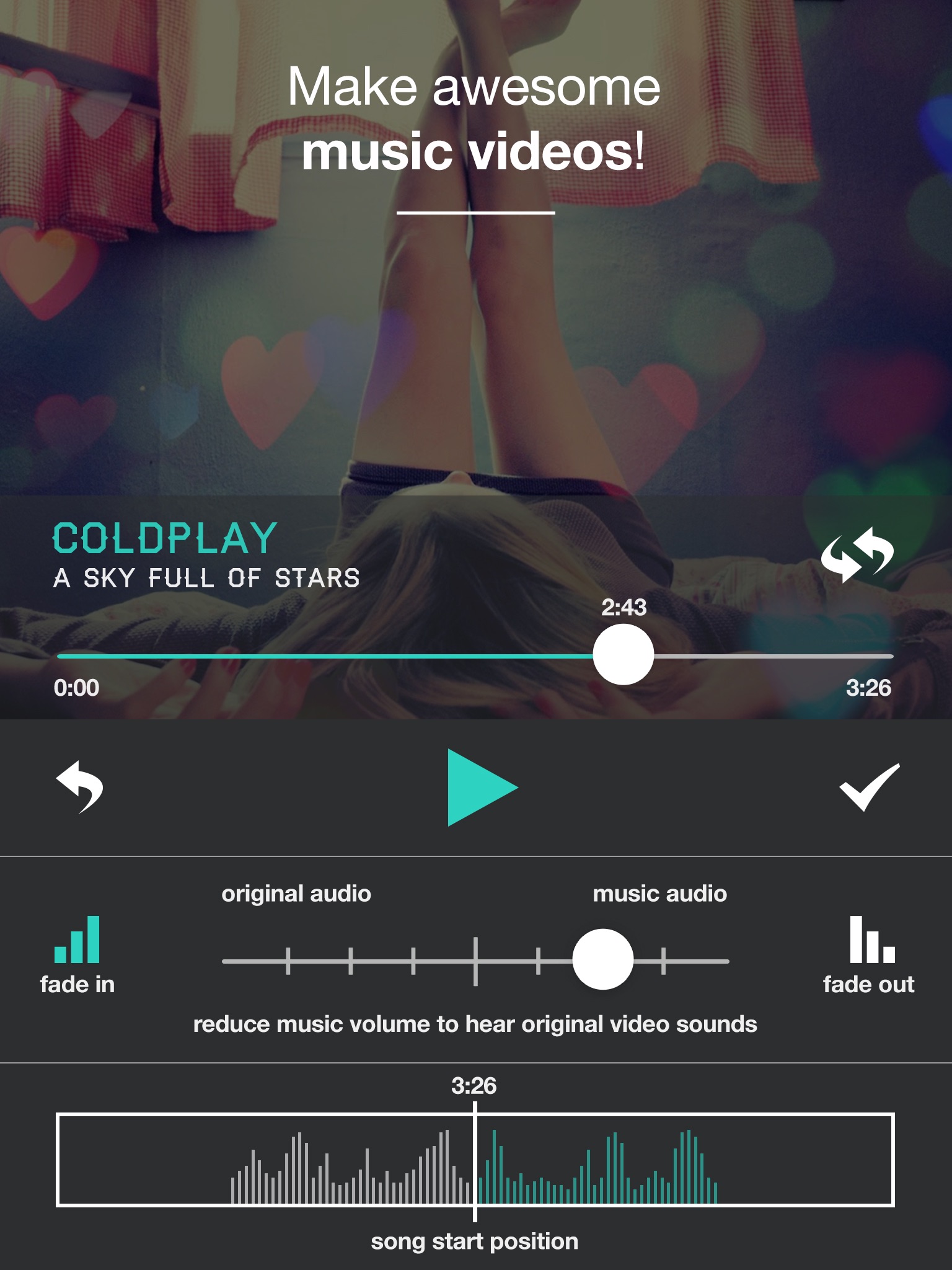 Fade the music in or out with MusicVid pro.