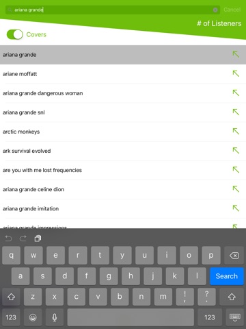 √ Search for songs, artist, DJ, remix or cover