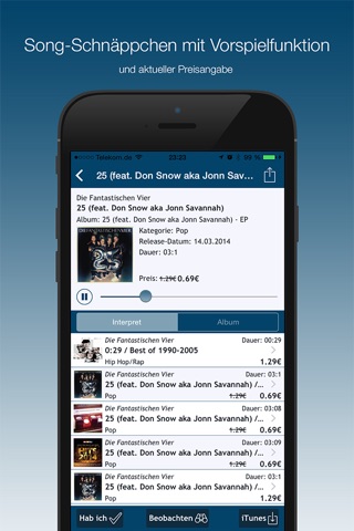 Neuerscheinungen dürfen auch nicht fehlen und das beste ist.. Füge deine Wunschsongs zu deiner Preisalarmliste hinzu, der MusikTicker meldet dir die Preissenkungen und merkt sich mit der Zeit dein Geschmack und versucht dir jeweils die passendsten Titel aus den aktuellen Charts zu empfehlen.