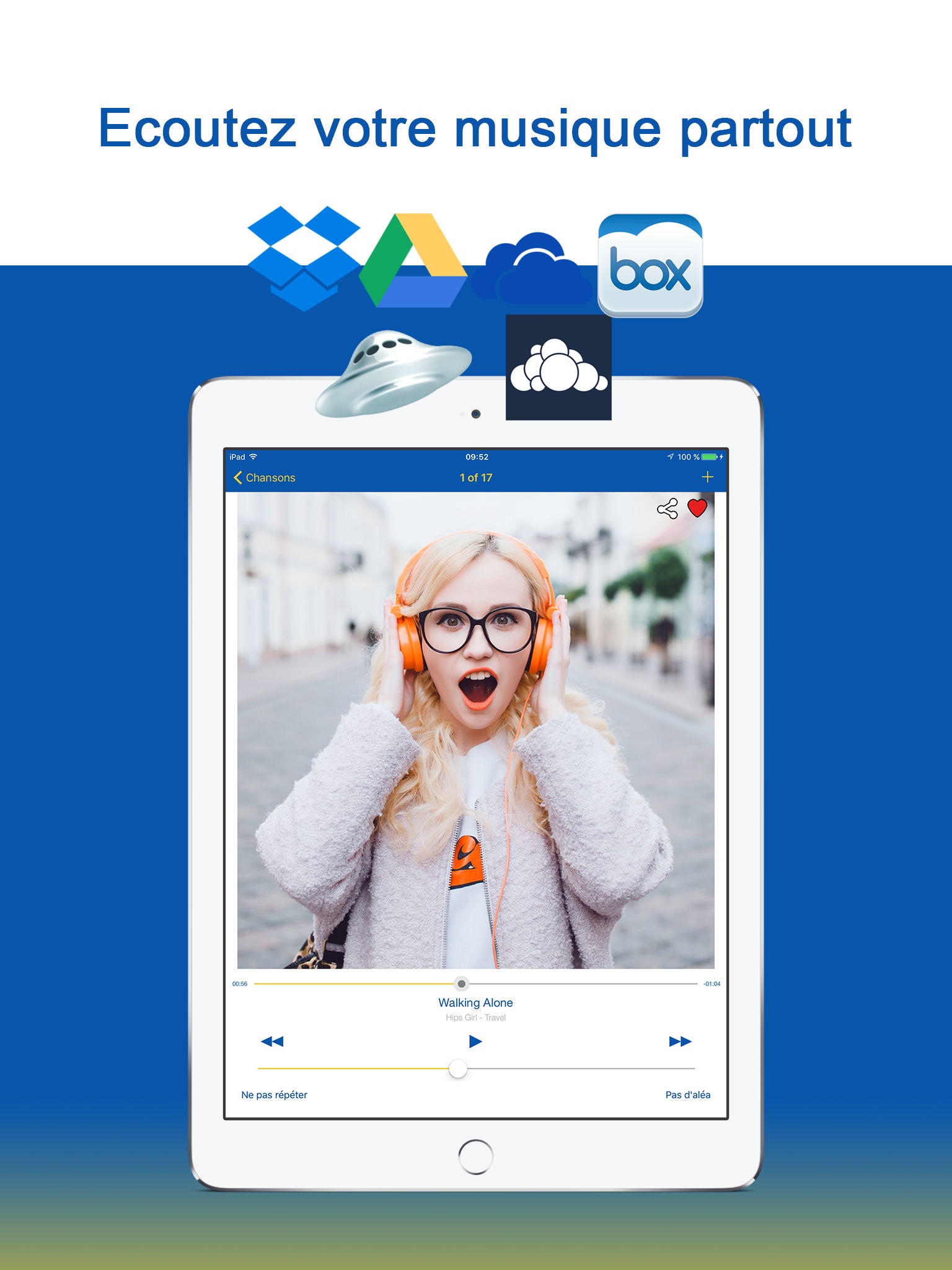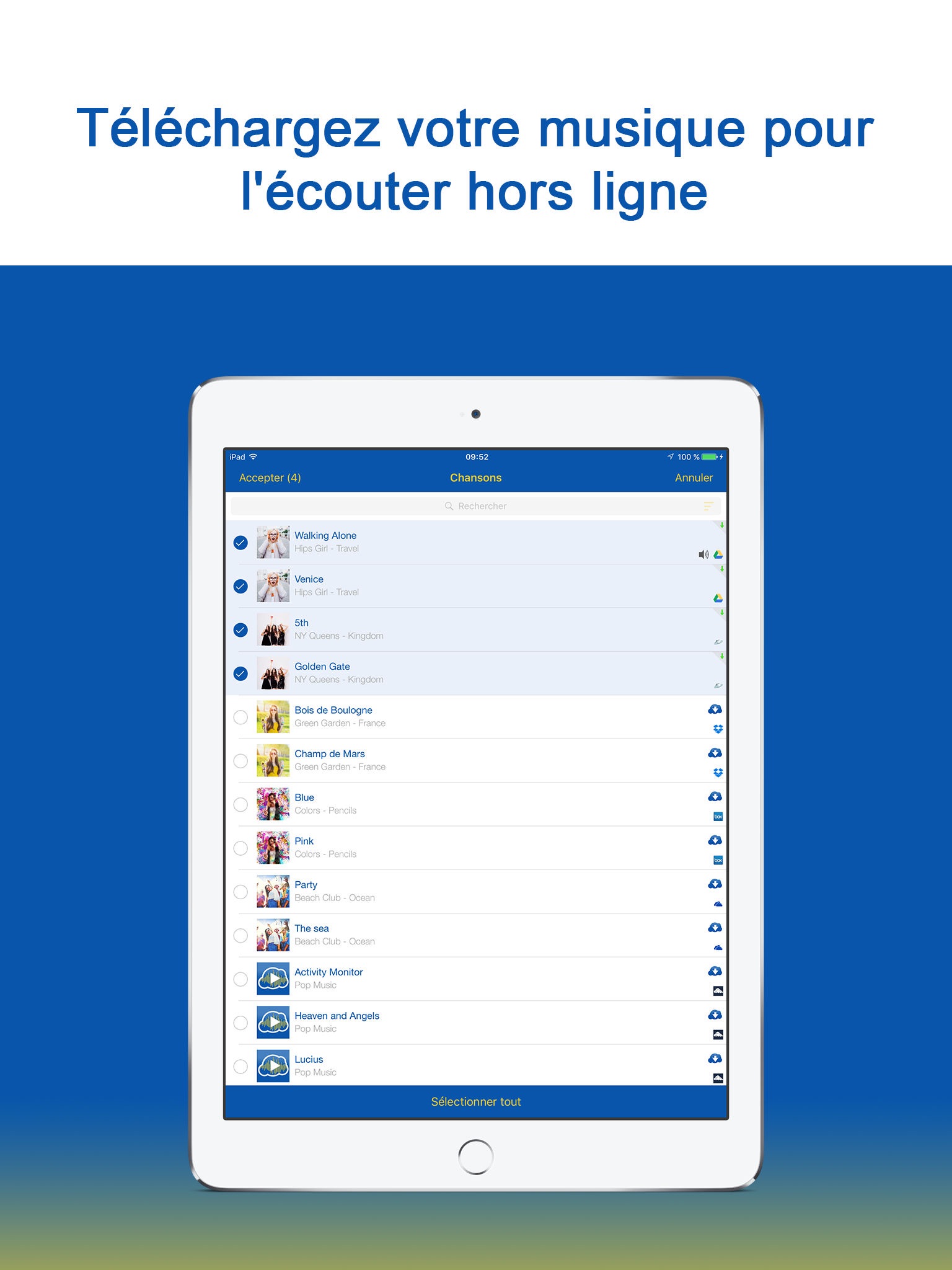 MusiNext give you access your favorite music across the most used Cloud Services. Thanks to our multi-cloud system MusiNext syncs all your music as a single collection.