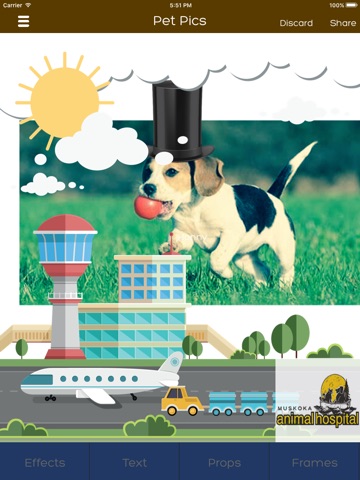 · Use the Pet Photo Booth to create and edit fun photos of your pet for easy sharing on social media