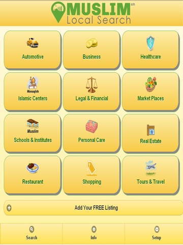 Muslim Local Search Mobile app is a directory of Masaajid, Islamic Centers, Muslim Schools, Muslim Organization, Muslim Businesses, Restaurant & Services in USA, Canada & UK. This App welcomes everyone & its FREE for all. An basic essential app for all Muslims in USA, Canada & UK.