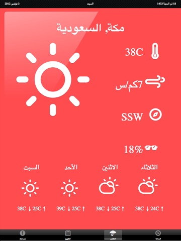 يخبرك التطبيق بحالة الطقس التفصيلية والمتوقعة لأربعة أيام قادمة