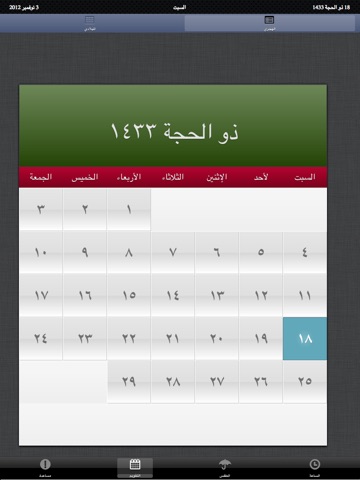 ويحتوي تطبيق ساعة المسلم على التقويمين الهجري و الميلادي