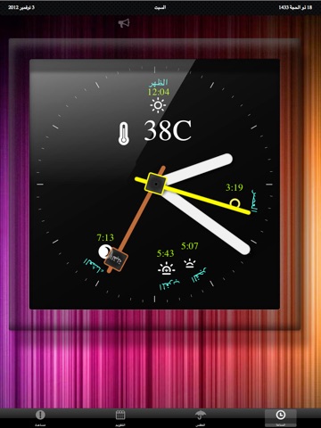 تصمميم آنيق لساعة تخبرك من أول نظرة عن الوقت والتاريخ وأوقات الصلاة واتجاه القبلة ودرجة الحرارة