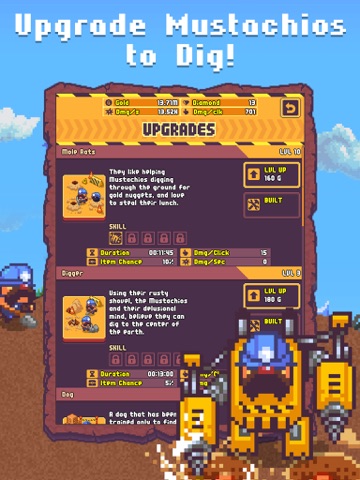 • Upgrade your Mustachios to unlock new skills and make even more gold while you’re idle