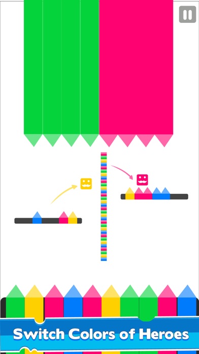 tap to jump , switch the color of heroes and avoid obstacles to complete challenges in a colorful relaxing free to play game.unlock many mustache heroes .