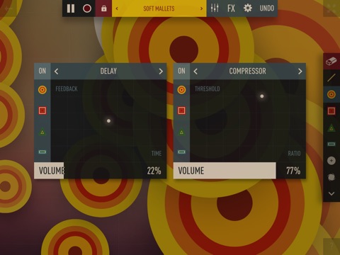 Je ne me lasse pas de cette appli, tant au niveau musical quau niveau graphique : il nest pas rare de se retrouver hypnotisé par le mouvement et les mélopées de ses propres créations.