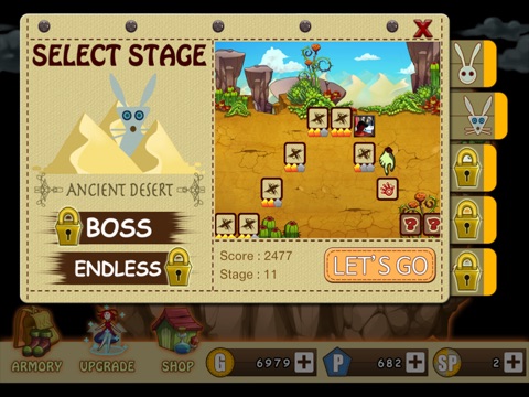 - Each areas is consist of 24 story stages and 1 boss stage and 1 endless stage.