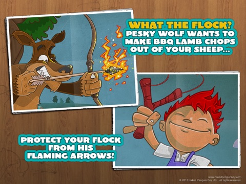 The survival of your flock is at stake. Deep in the hills of Wales, you must defend your flock against the vicious wolf. In Mutton for Punishment’s rapid-fire game, you must use your sling shot to protect your flock and destroy the pesky wolfs flaming arrows before they flambé them! Launch the stones from your slingshot at the correct time to destroy the arrows and collect baawsome power-ups.