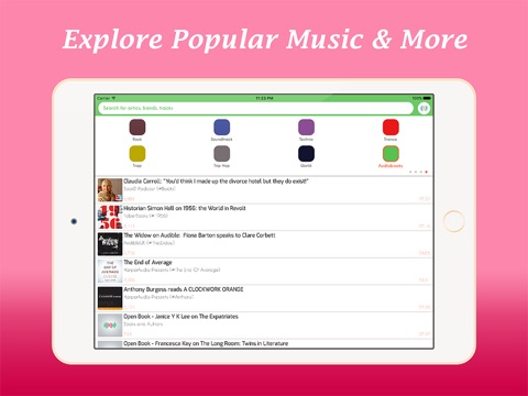 Have fun to find all your favorite artics, bands, tracks and include smart category for you like: Popular Music, Alternative Rock, Ambient, Classical, Country, Dance & EDM, Dancehall, Deep House, Disco, Drum & Bass, Dubstep, Rock, jazz, Hip Hop & Rap, Jazz & Blues, Pop ...