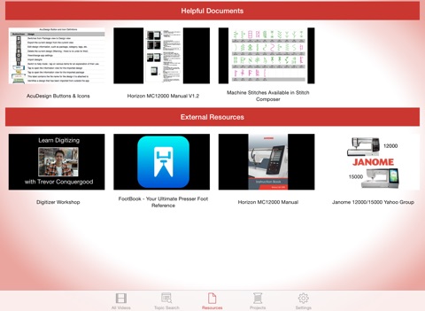 My 12000 is a comprehensive reference for the Janome Horizon Memory Craft 12000 sewing machine. It features videos for all machine functions as well as software. A reliable Internet connection is required. Due to the high resolution of the videos a WiFi connection is preferred over cellular data.