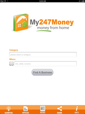 Using the free My247Money app, youll soon discover how ordinary people are making money at home online - part-time and full-time. Now you can start a business at home online. Minimal investment required. Free information in the app shows you how.