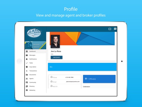 My Agent Account is an all in one real estate app powered by La Rosa Realty. It encompasses key features that are designed to help real estate agents. Features such as Transaction Management, Document Manager, Task Manager, Calendar, Event Manager, Education Classes, Marketing, and so much more!