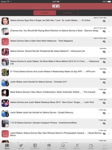 Omg this app is awesome!!!!!! It keeps u up to date with every thing Selena Gomez!!!