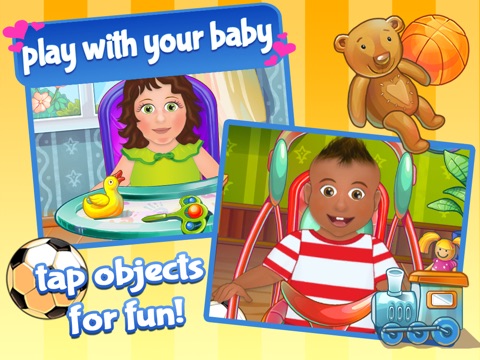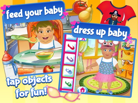 Play mommy! Dress up and take care of the cutest baby girls and boys. Easy for all ages. Explore baby’s house - tap on baby’s toys, books, animals and more! Great sound effects, animal sounds and more.