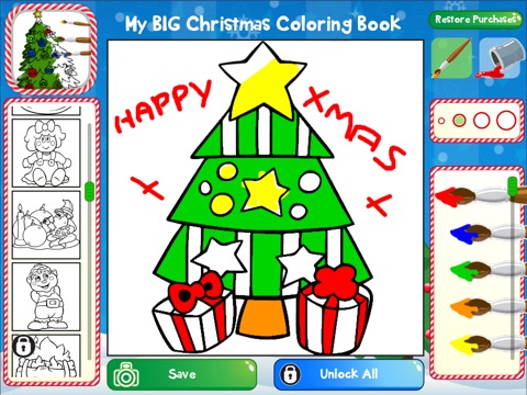 Choose from lots of festive pictures to color or fill in and then save and share them with your friends and family.