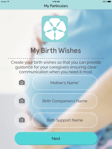 The My Birth Wishes app is your trusted friend. Whilst we know Mother Nature has a way of doing as she pleases, the app will inspire you with confidence to communicate your most important wishes – the wishes you have concerning the time you bring new life into the world.