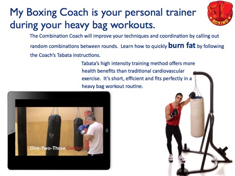 •The Combination Coach will improve your techniques and coordination by calling out random combinations between rounds. Learn how to quickly burn fat by following the Coach’s Tabata instructions.