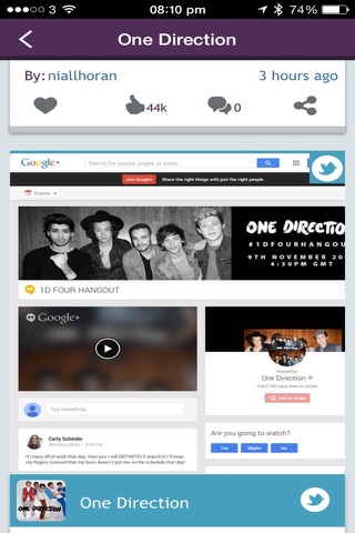 • See updates from everywhere that matters – tweets, posts, music and videos from your chosen stars, displayed immediately in your personalised stream without needing to have multiple accounts for each separate platform.