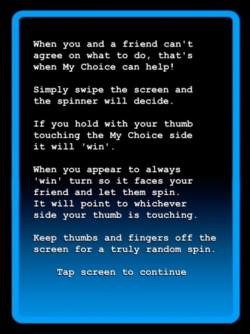 Simply swipe our old-fashioned spinner to see if it lands on "My Choice" or "Your Choice" to break the deadlock.