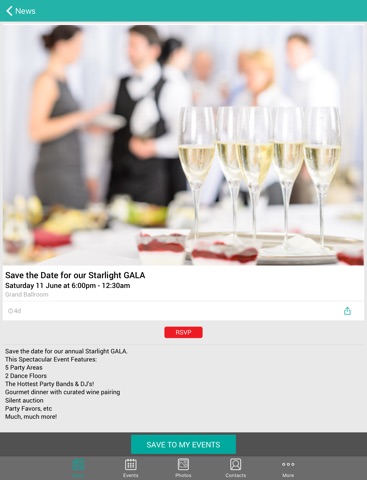 Are you a member of a private club or association? Stay in the know with the latest news and events from your club; browse photos and videos; save events to your calendar; and connect with fellow members.