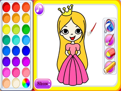 Everyone loves coloring right? If you enjoy it as well, take out this fun new coloring book and bring these black and white images to life! Just browse the pages and choose between a cute mermaid, a delicious strawberry birthday cake, a submarine, a car, a horse, a candy, a princess, a pony, a rose, a ladybug or a butterfly. On the left side of the screen you have all the colors and it is a very large variety. And if you are not happy with the choices, you also have the opportunity to choose the ideal shade from a color spectrum which has them all. On the right side of the screen you can pick your tools. It can be a bucket that you can use to automatically fill up a portion of the image, a paintbrush that you can use to color manually, and two types of erasers if you are unhappy with your color choices, so you can undo them. Have fun!