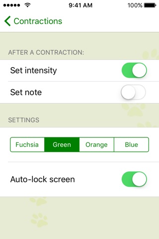 Application très bien faite! Tout y est: le temps chronometre a démarrer (avec l heure précise) et à stoper dès la fin de la contraction avec l évaluation de lintensité de celle ci.